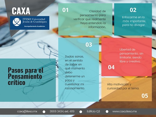 - Te presentamos la siguiente infografía con 5 pasos para desarrollar el pensamiento crítico